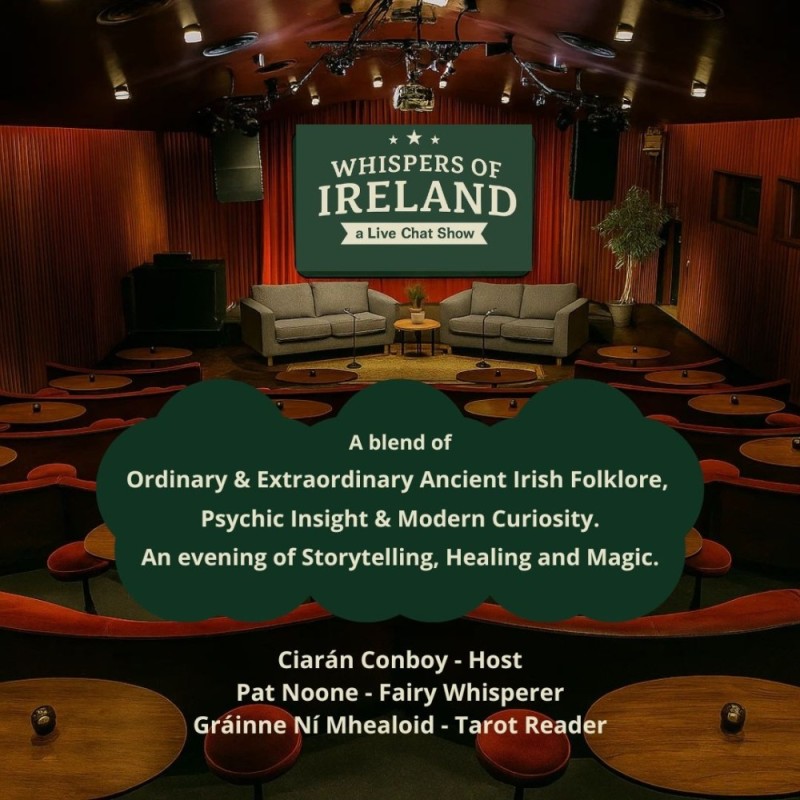 ✨ Step into the magical, and wildly entertaining Whispers of Ireland – A Live Chat Show — a one-of-a-kind evening where Irish folklore, the supernatural, wellness, storytelling, and a touch of the mystical collides. This isn’t your usual night out. Expect laughter, goosebumps, and weird facts you’ll be repeating to friends, all served alongside a front-row seat to mysteries usually reserved for misty forests and ancient stone circles.